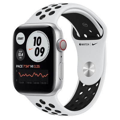Apple Watch Nike Series 6 GPS + Cellular, 44mm Silver Aluminium Case with Pure Platinum/Black Nike Sport Band - Regular