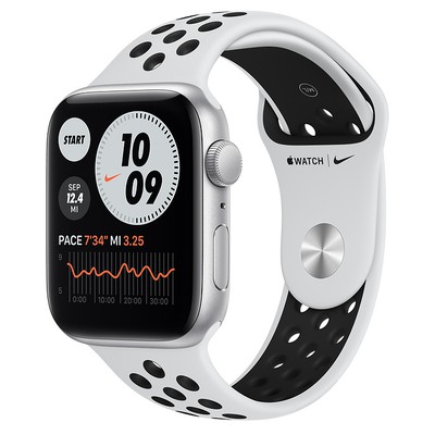 Apple Watch Nike Series 6 GPS, 44mm Silver Aluminium Case with Pure Platinum/Black Nike Sport Band - Regular