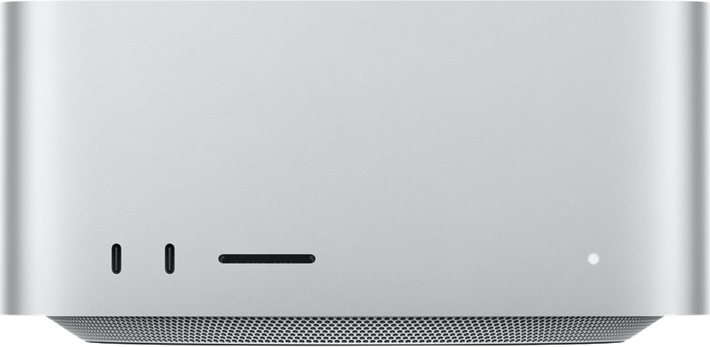 - Back: Four Thunderbolt 5 ports, two USB-A ports, HDMI port, 10Gb Ethernet port, headphone jack