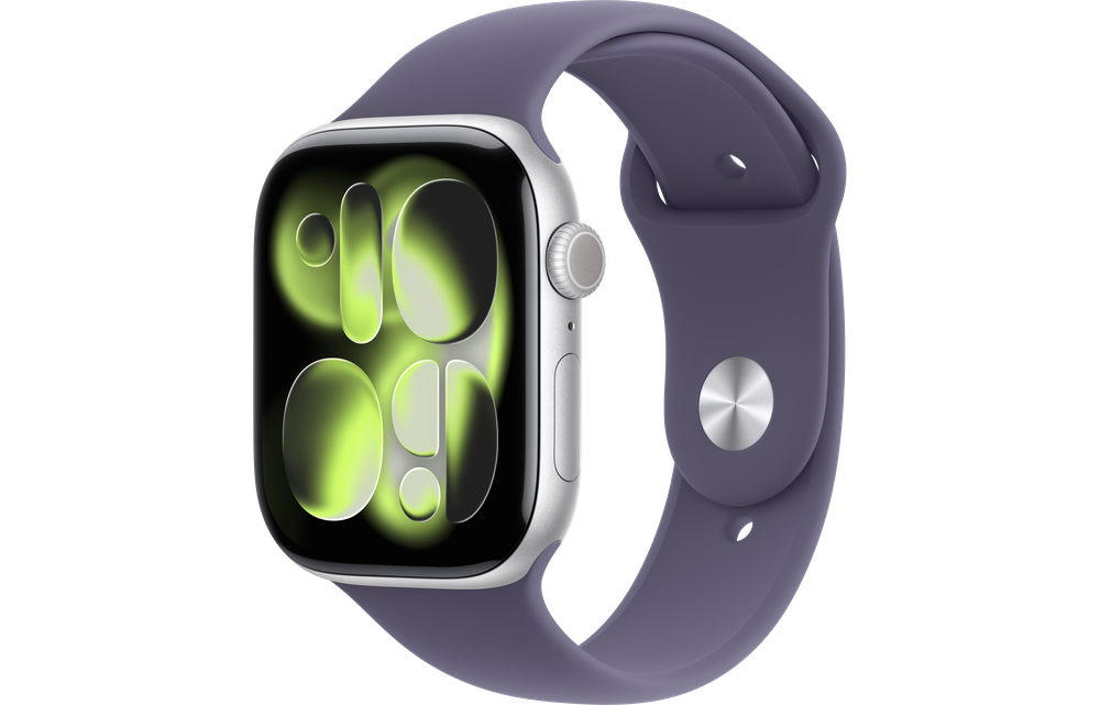Apple Watch Series 11 GPS 46mm Silver Aluminium Case with Purple Fog Sport Band - M/L