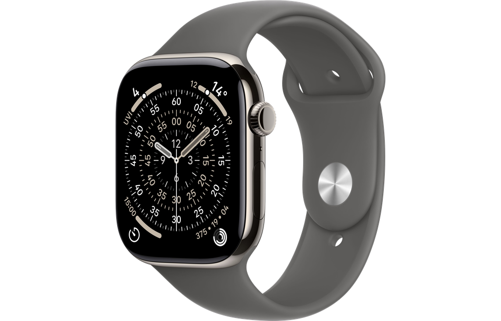 Apple Watch Series 11 GPS + Cellular 42mm Natural Titanium Case with Stone Grey Sport Band - M/L