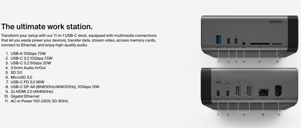 Belkin Connect USB-C 11-in-1 Pro GaN Dock 150W
